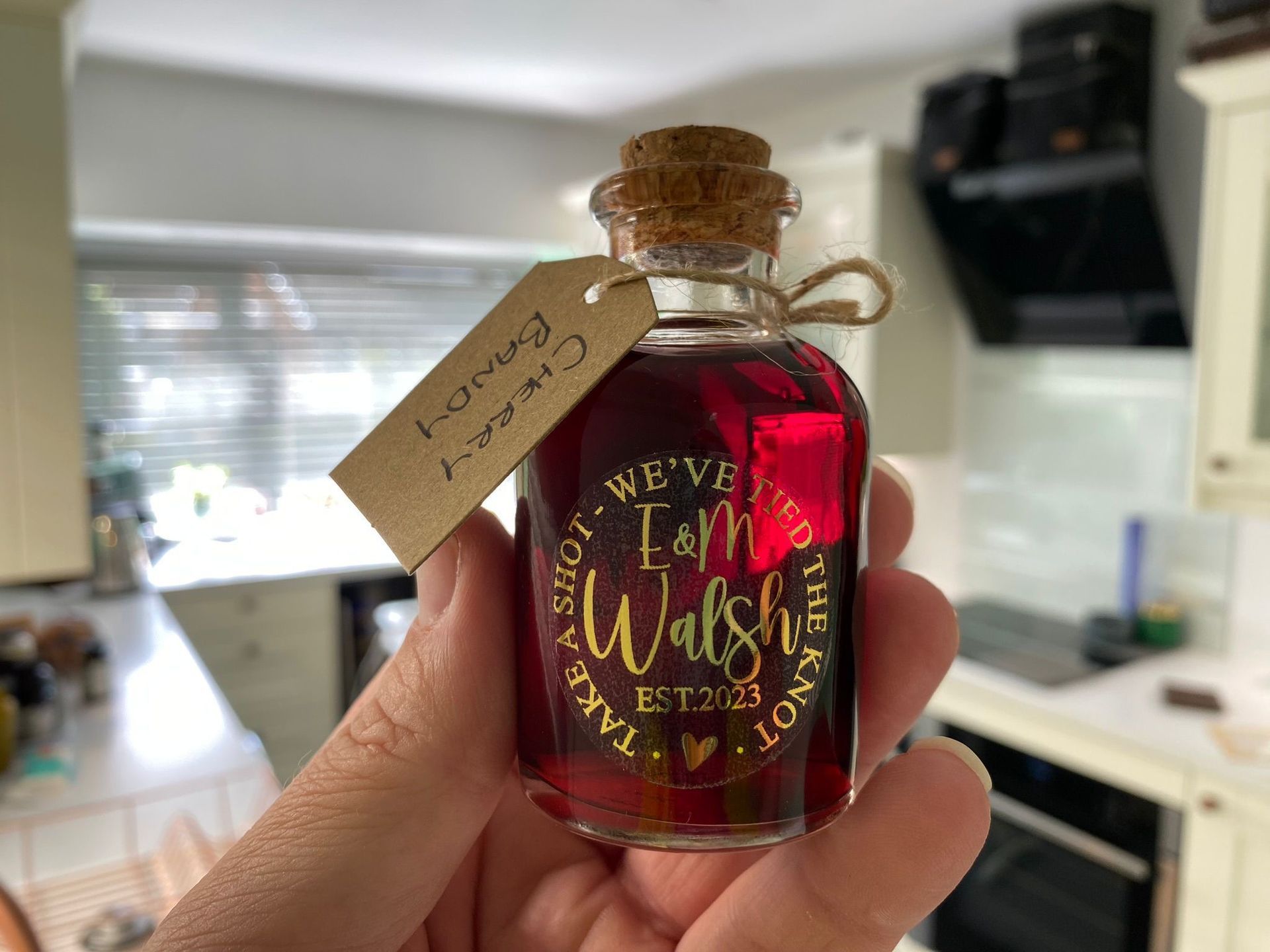 Elevate your next party, wedding, or special event with our unique shot display! 25ml or 50ml glass bottles can be customised to suit your requirements.